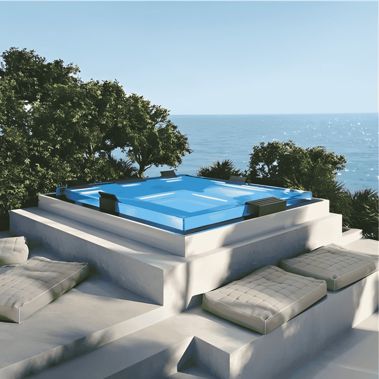 La caratteristica fondamentale di questa minipiscina è il sistema di troppo pieno a sfioro con vasca di compenso integrata: è un meccanismo avanzato che permette all'acqua di traboccare uniformemente lungo i bordi della minipiscina, creando un effetto visivo elegante e ordinato. Questo sistema non solo evita fuoriuscite accidentali, ma mantiene anche l'acqua costante grazie alla vasca di compenso integrata, che raccoglie e reintroduce l'acqua in eccesso. Il risultato è un design esteticamente accattivante e una facilità d’uso, poiché il livello dell'acqua resta sempre ottimale senza necessità di intervento manuale.